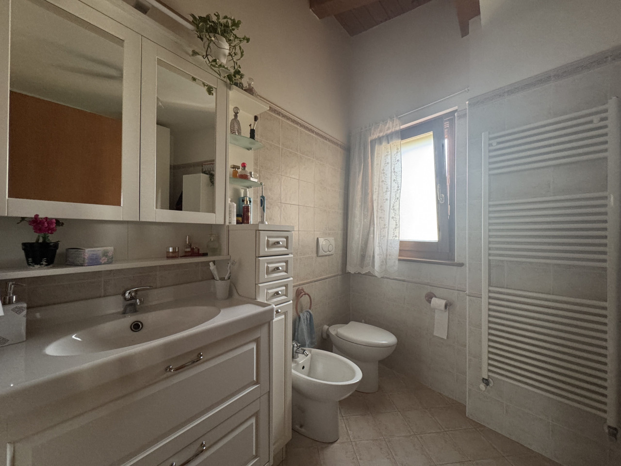 L’ingresso si apre su una zona giorno luminosa e ben distribuita, con soggiorno e cucina separata, ideale per vivere comodamente gli spazi della casa. Al piano terra si trovano anche la camera matrimoniale e un bagno completo finestrato. Dal soggiorno si accede al terrazzo spazioso, perfetto per momenti di relax all’aperto.